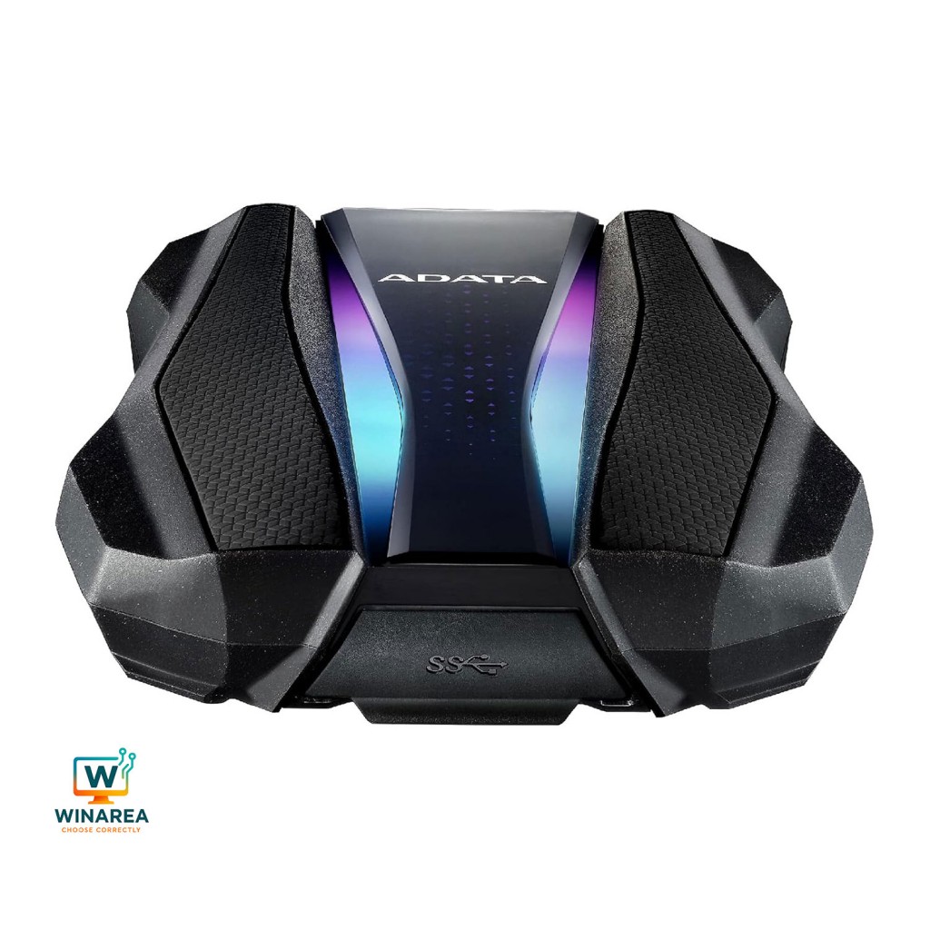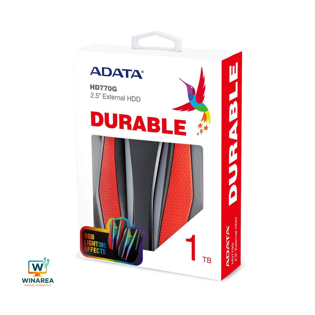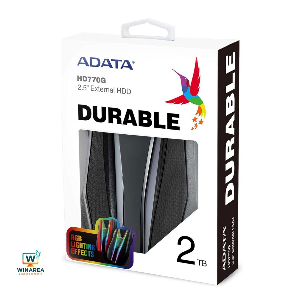 با استفاده از HD770G می توانید تمام بازی ها و اطلاعات خود را ذخیره کنید. علاوه بر این HD770G دارای استاندارد IP68 و این بدان معناست که نه تنها دارای بدنه سه لایه مقاوم است بلکه در برابر آب، گرد و غبار و شوک هم مقاوم است. از یک هارد اکسترنال نمی توان انتظاری بیش از این داشت (استاندارد IP68 به معنی مقاومت در برابر ورود گرد و غبار و مایعات به درون هارد دیسک است). HD770G حتی فراتر از استانداردهای IP68 از اطلاعات شما در برابر آب و گرد و غبار محافظت می کند. به صورت خاص می تواند 120 دقیقه در عمق 2 متری آب مقاومت کند. HD770G طوری طراحی شده است که مانند یک جنگجو سخت باشد! با رعایت استاندارد MIL-STD-810G 516.6 ، این هارددیسک اکسترنال می تواند از سقوط های ناگهانی از ارتفاع 1.22 متر جان سالم به در ببرد و از اطلاعات ذخیره شده محافظت کند. می توانید فضای ذخیره سازی محدود روی کنسول های بازی خود را، با استفاده از HD770G و فضای زیاد برای ذخیره سازی بازی های خود جبران کنید. این هارد اکسترنال نه تنها برای بازی های کنسولی بسیار کارآمد است بلکه برای بازی های کامپیوتری هم گزینه بسیار مناسبی است. برخلاف درپوش هاردهای اکسترنال دیگر که به زحمت بسته می شوند درپوش HD770G به راحتی بسته می شود و از دستگاه در برابر نفود آب محافظت می کند. هارد دیسک های اکسترنال جدید HD770G، طراحی بسیار زیبایی دارند که به این سادگی نمی توانید از آنها عبور کنید. بر روی هارد دیسک نوارهای LED RGB نصب شده است که زیبایی آنها را دو چندان می کند. البته HD770G با رمز گذاری 256 بیتی AES طراحی شده اند که حفاظت از داده ها را بهبود می بخشد. هرآنچه که بخواهید، در خانواده HD770G خواهید یافت.